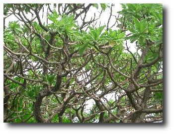 妖しげに絡まっているような枝は心をとらえます。沖縄の海辺ではどこでも見ることのできる木ですが、こういう風に美しい枝の連なりは本島では記憶にありません。海人(ウミンチュ・漁師)たちは「ガンチョーギー」つまり「眼鏡の木」と呼びます。この木で海に潜るときの眼鏡をこしらえます。久高島の友人がこの枝を折って見せてくれましたが、軸がスカスカですぐに眼鏡の形になりそうでした。その枝がそのまま眼鏡になる不思議を見せてもらいました。
